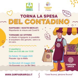Domani ,giorno 16 Maggio riapertura del Mercato di CAMPAGNA AMICA ad Agrigento presso il Piazzale Ugo La Malfa ,rispettando le misure anti Covid -19,i nostri clienti troveranno i prodotti a km 0.